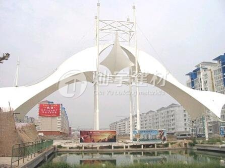 玻璃纖維覆聚聚四氟乙烯(Teflon)材料強度高、彈性模量大、自潔、耐久耐火等性能好,但它價格較貴,不易折疊,對裁剪制作精度要求較高,壽命一般在30年以上。